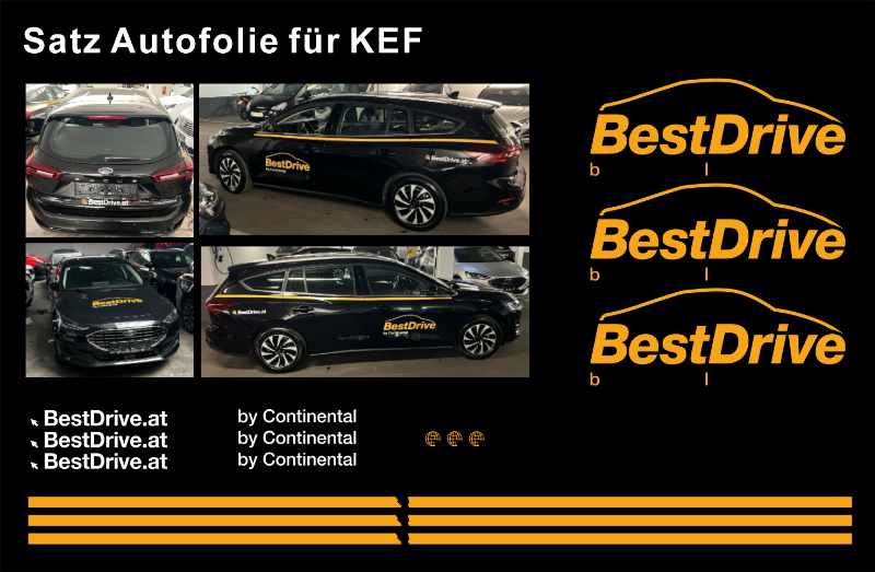 Der Foliensatz KEF-Kfz Bestdrive eignet sich ideal zur professionellen Fahrzeugbeschriftung und sorgt für eine einheitliche Markenpräsenz.